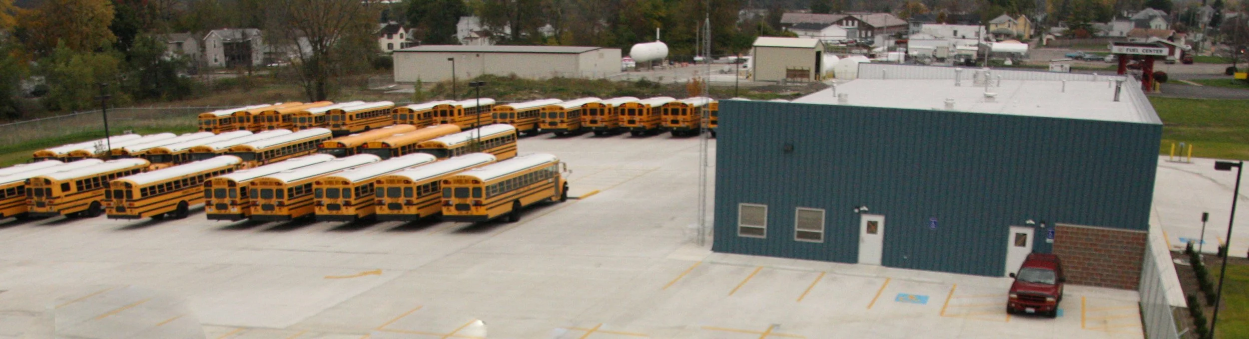 The bus garage features electronic gate openers, a maintenance area with wash bay, and a 40,000-pound bus lift. This new facility, which can house up to 44 buses and has a fueling station, allows district drivers and dispatch employees to report to one central place.